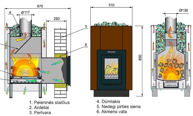 • Kūrenama iš priepirčio